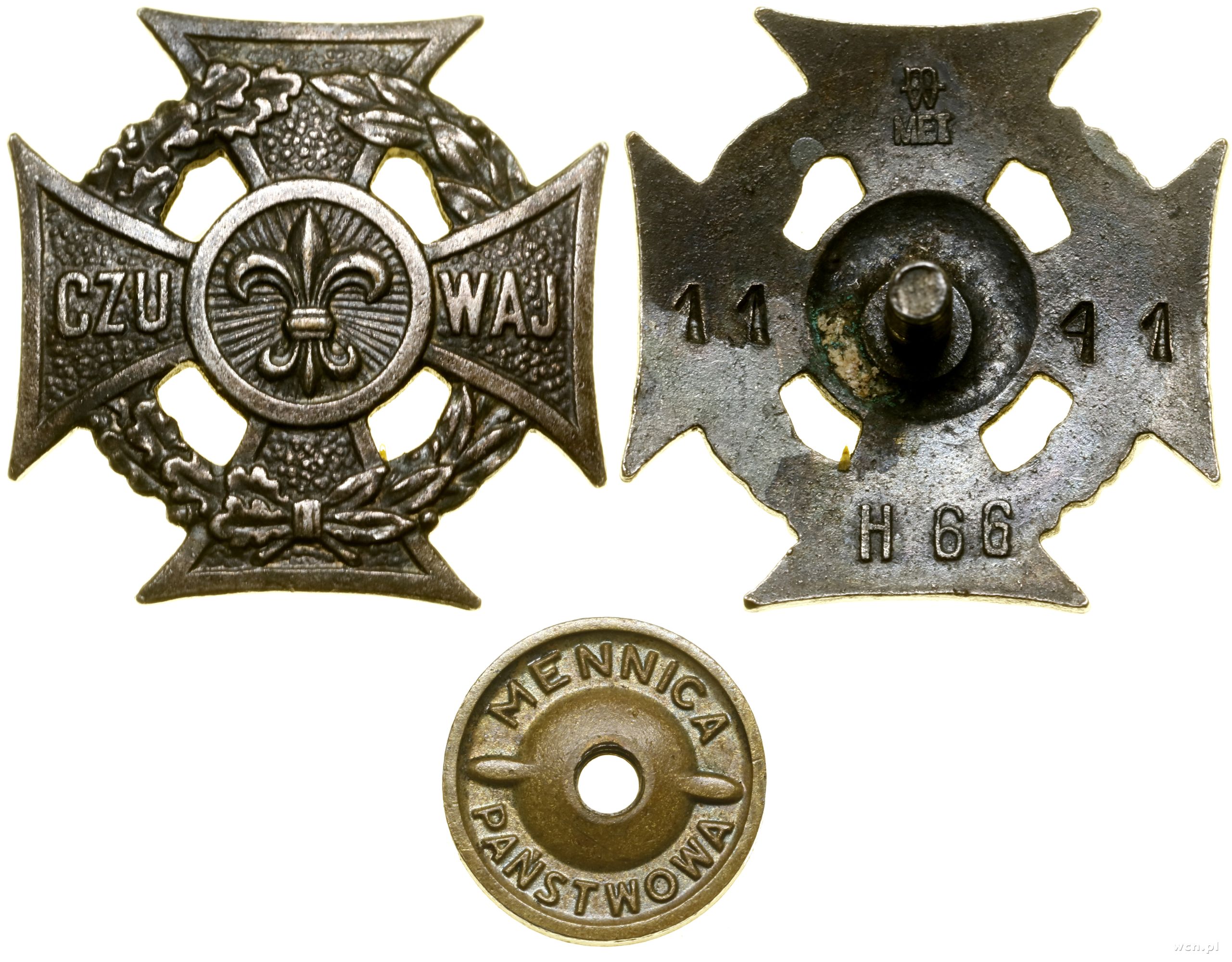 Krzyż, w kątach wieniec, na poziomej belce CZU - WAJ, w m... | I- |