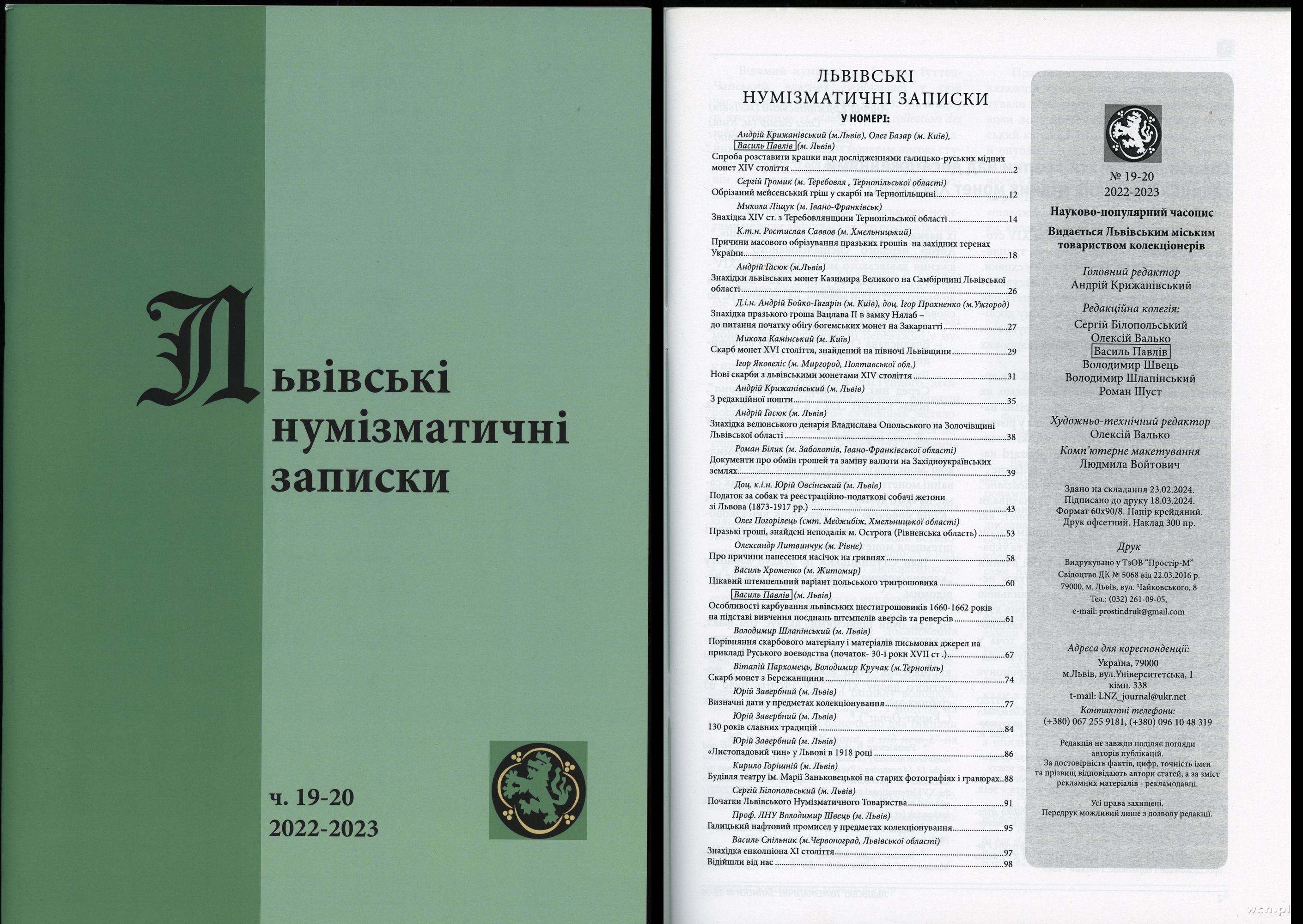 czasopisma, Львiвськi нумiзматичнi записки (Lwowskie Zapiski Numizmatyczne), nr 19–20/..
