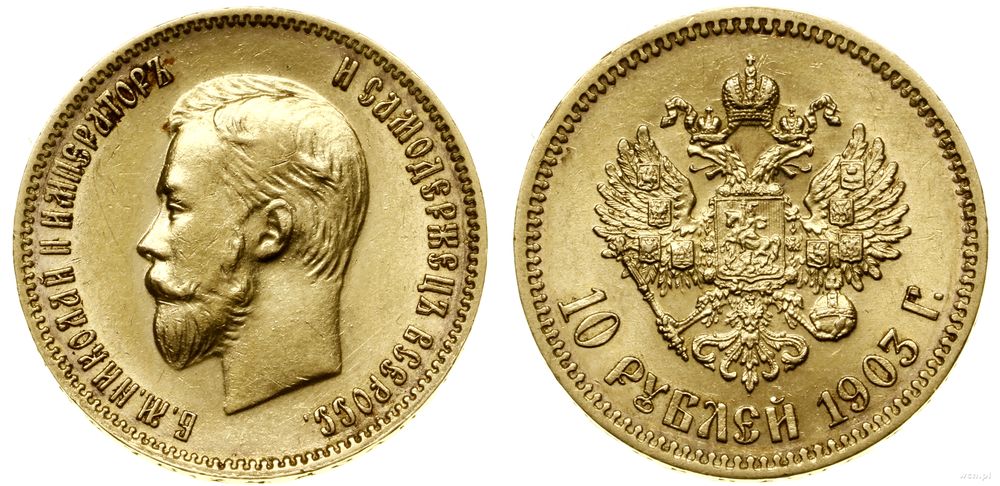 | Opis: | Rosja - Mikołaj II (1894–1917), 10 rubli, 1903 (А•Р), Petersburg |