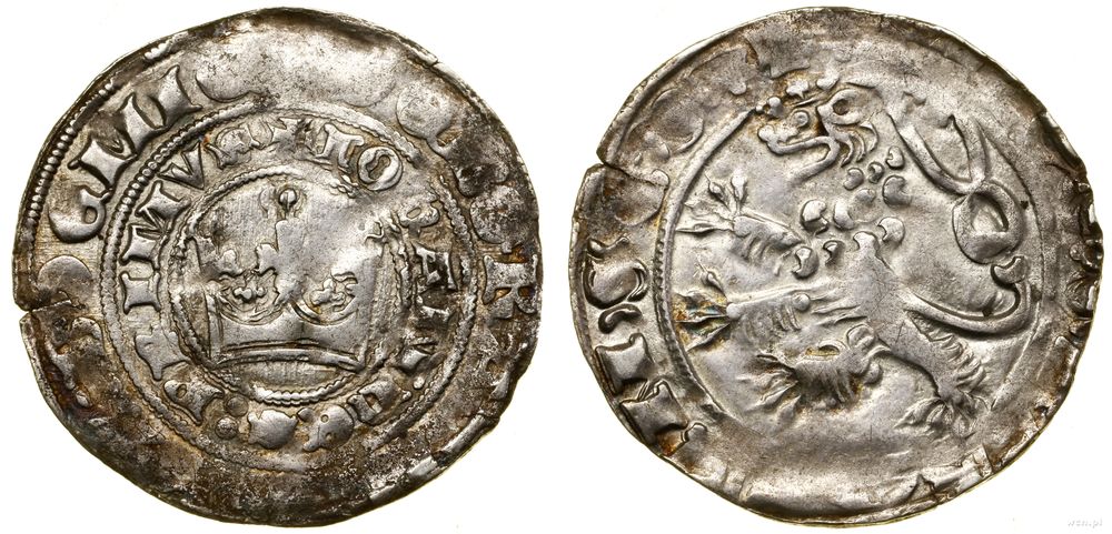 | Opis: | Czechy - Jan I Luksemburski (1310–1346), grosz praski, Kutná Hora, Aw: + IOhANnES ⦂ PRIMVS, + DEI ⦂ GRA ... BOEMIE, Rw: Lew czeski, słabo widoczna legenda |