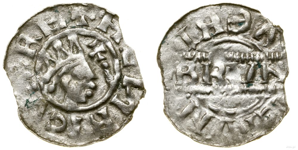 | Opis: | Niderlandy - Fryzja - Margrabia Bruno III (1038–1057), denar, Leeuwarden, Aw: Popiersie cesarza Henryka III w prawo, + HEИRICVS RE, Rw: Napis poziomy •BR•VN, u dołu i góry VERI - LIVN |