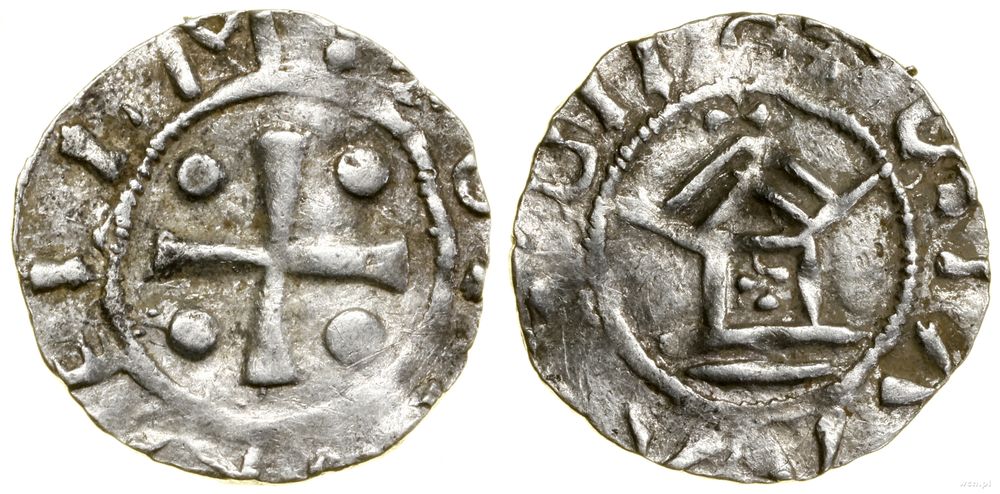 | Opis: | Niemcy - Frankonia - Moguncja – arcybiskupstwo - Otto I (936–973), denar, Aw: Krzyż, w każdym kącie kulka, + OTTO… IM\ Rw: Kapliczka z krzyżem wewnątrz, legenda |