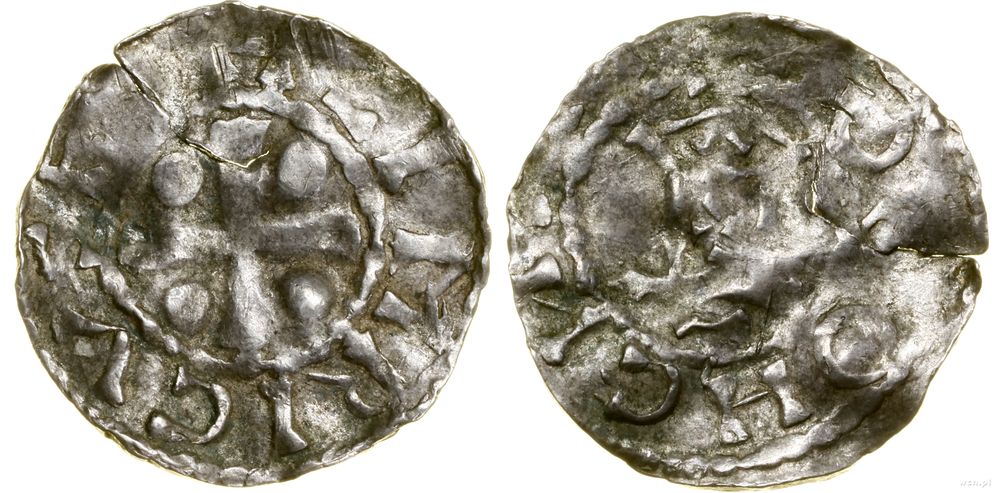 | Opis: | Niemcy - Frankonia - Moguncja – arcybiskupstwo - cesarz Henryk II (1002–1024), denar, Aw: Krzyż, w każdym kącie kulka, …EIMRICVS…, Rw: Kapliczka z krzyżem wewnątrz, …OHC… |