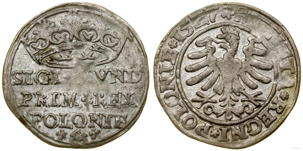 | Opis: | Polska - Zygmunt I Stary (1506–1548) - monety koronne, grosz, 1527, Kraków, na awersie korona renesansowa |