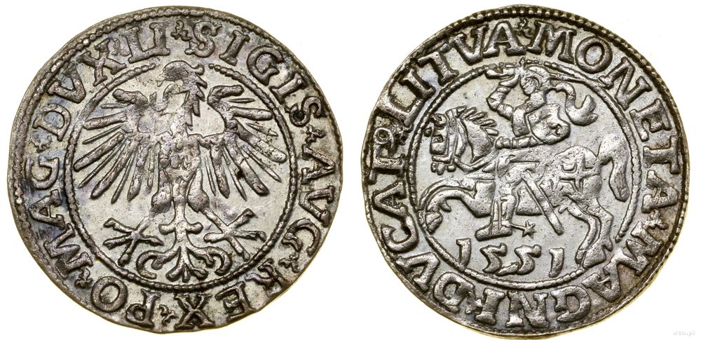 | Opis: | Polska - Zygmunt II August (1545–1572) - monety litewskie, półgrosz, 1551, Wilno, końcówki legend LI / LITVA |