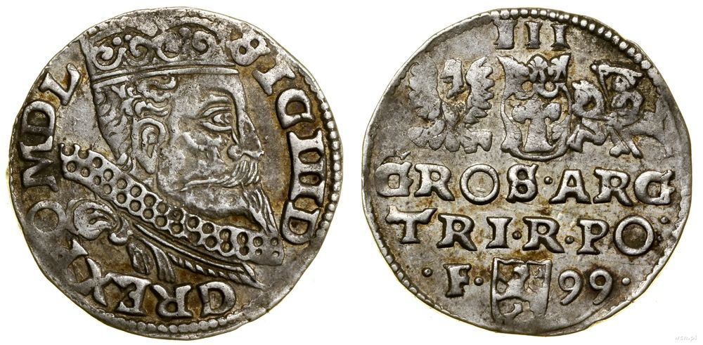 | Opis: | Polska - Zygmunt III Waza (1587–1632) - monety koronne, trojak, 1599, Wschowa, popiersie z kokardą pod rurkowatą kryzą |