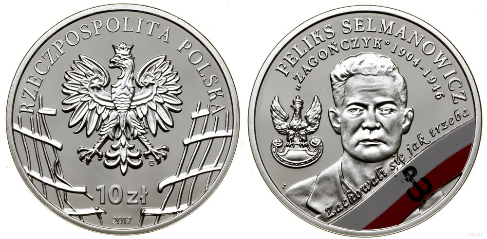 | Opis: | Polska - III Rzeczpospolita Polska (od 1989) - monety kolekcjonerskie, 10 złotych, 2017, Warszawa, Żołnierze Niezłomni – Feliks Selmanowicz "Zagończyk" |