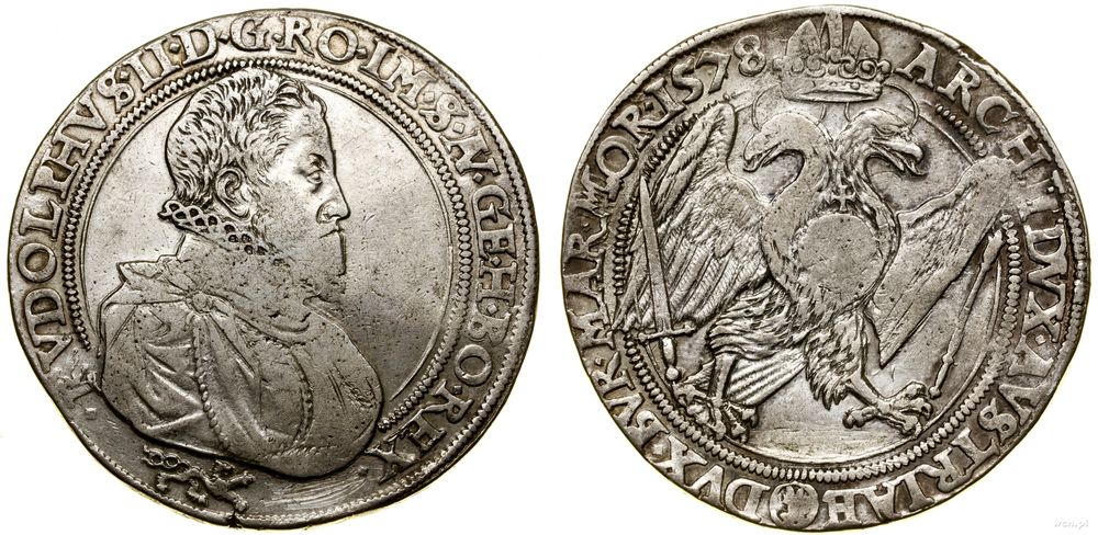 | Opis: | Austria - Rudolf II (1576–1612), talar, 1578, Kutná Hora, Aw: Popiersie władcy w prawo, legenda, Rw: Ukoronowany, dwugłowy Orzeł, legenda |