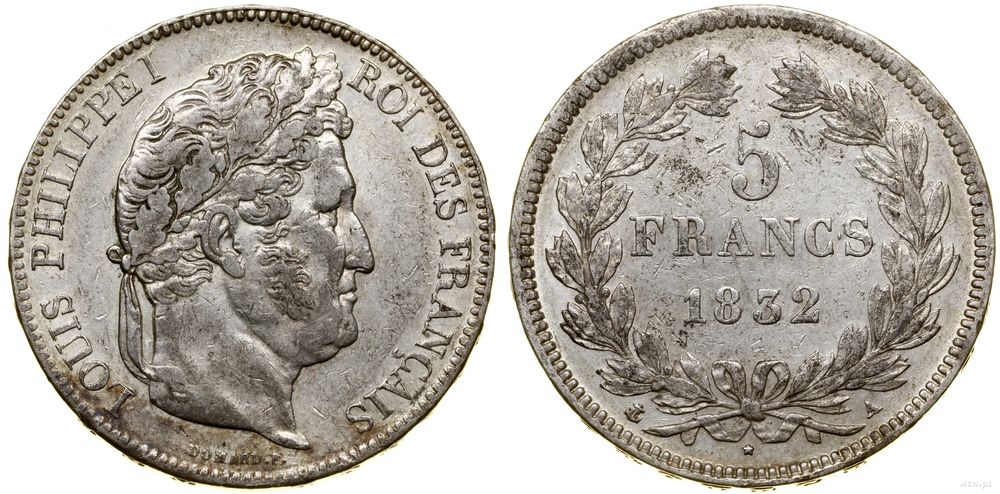 | Opis: | Francja - Ludwik Filip I (1830–1848), 5 franków, 1832 A, Paryż |