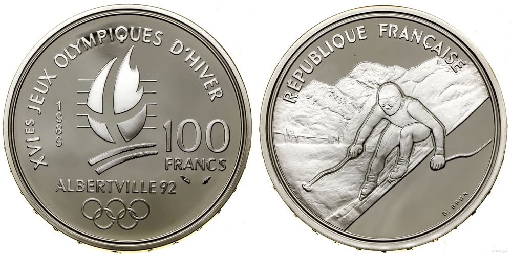 | Opis: | Francja - V Republika (od 1958), 100 franków, 1989, Paryż, XVI Igrzyska olimpijskie w Albertville 1992 (Narciarstwo alpejskie) |