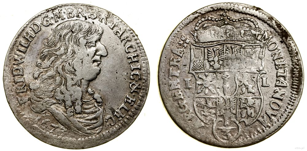| Opis: | Niemcy - Brandenburgia-Prusy - Fryderyk Wilhelm (1640–1688), 1/3 talara, 1673 IL, Berlin, data pod popiersiem |