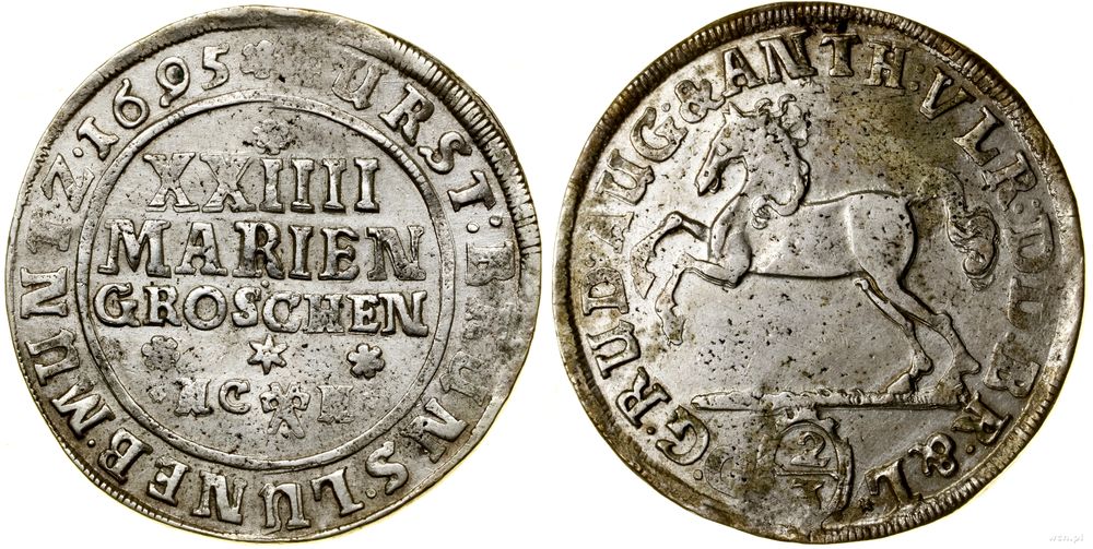 | Opis: | Niemcy - Brunszwik-Wolfenbüttel - Rudolf August i Antoni Ulryk (1685–1704), 24 grosze maryjne, 1695 HC - H, Braunschweig |