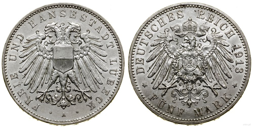 | Opis: | Niemcy - Lubeka – miasto, 5 marek, 1913 A, Berlin |