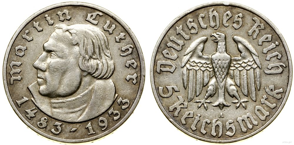 | Opis: | Niemcy - Republika Weimarska (1918–1933), 5 marek, 1933 A, Berlin, 450. rocznica urodzin Marcina Lutra |