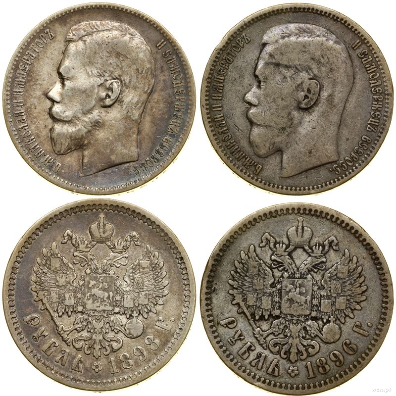 | Opis: | Rosja - Mikołaj II (1894–1917), zestaw: 2 x rubel, 1896 (✭) i 1898 (А•Г), Paryż i Petersburg |