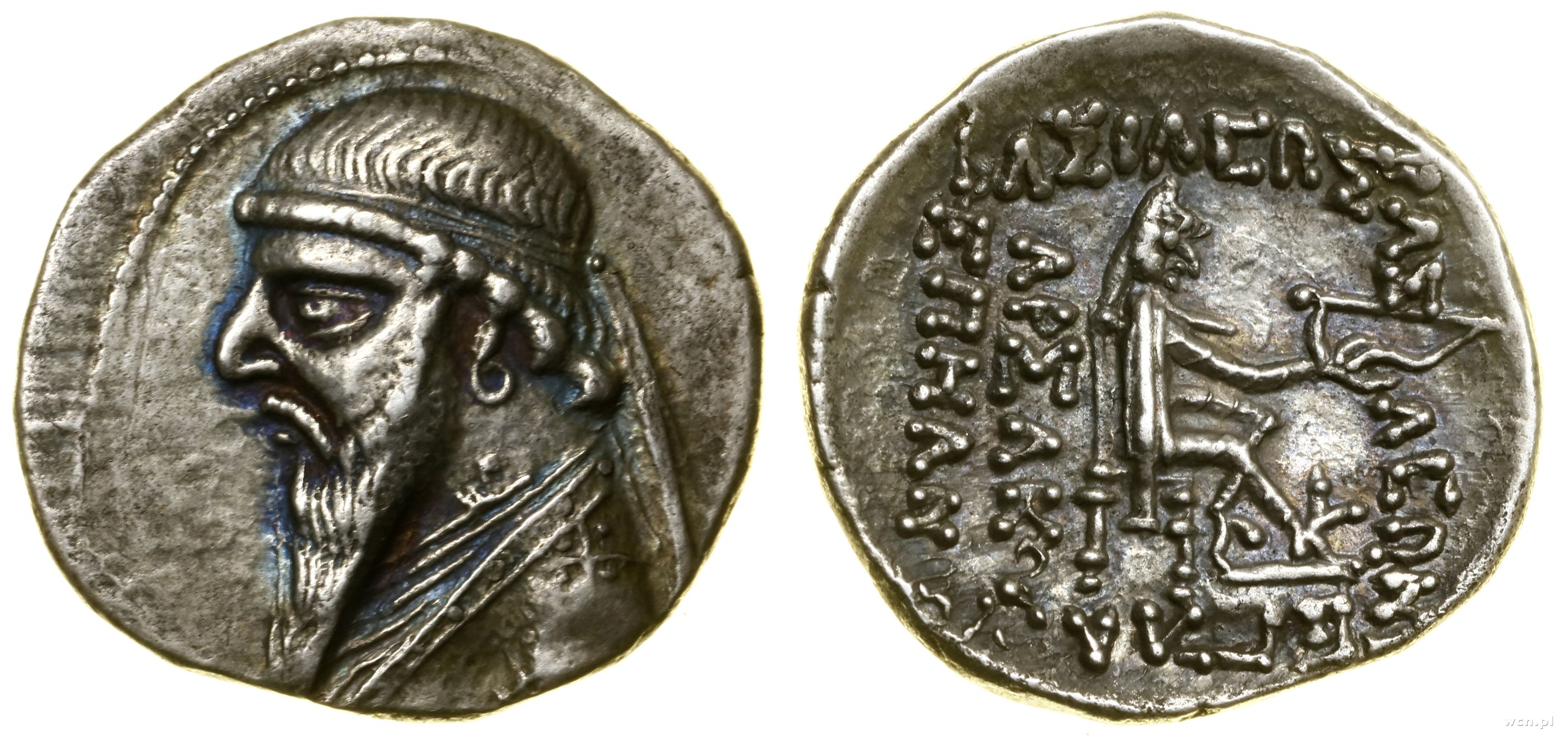 Aw: Popiersie władcy w lewo, Rw: Rw: Arsakes I (pierwszy ... | II |
