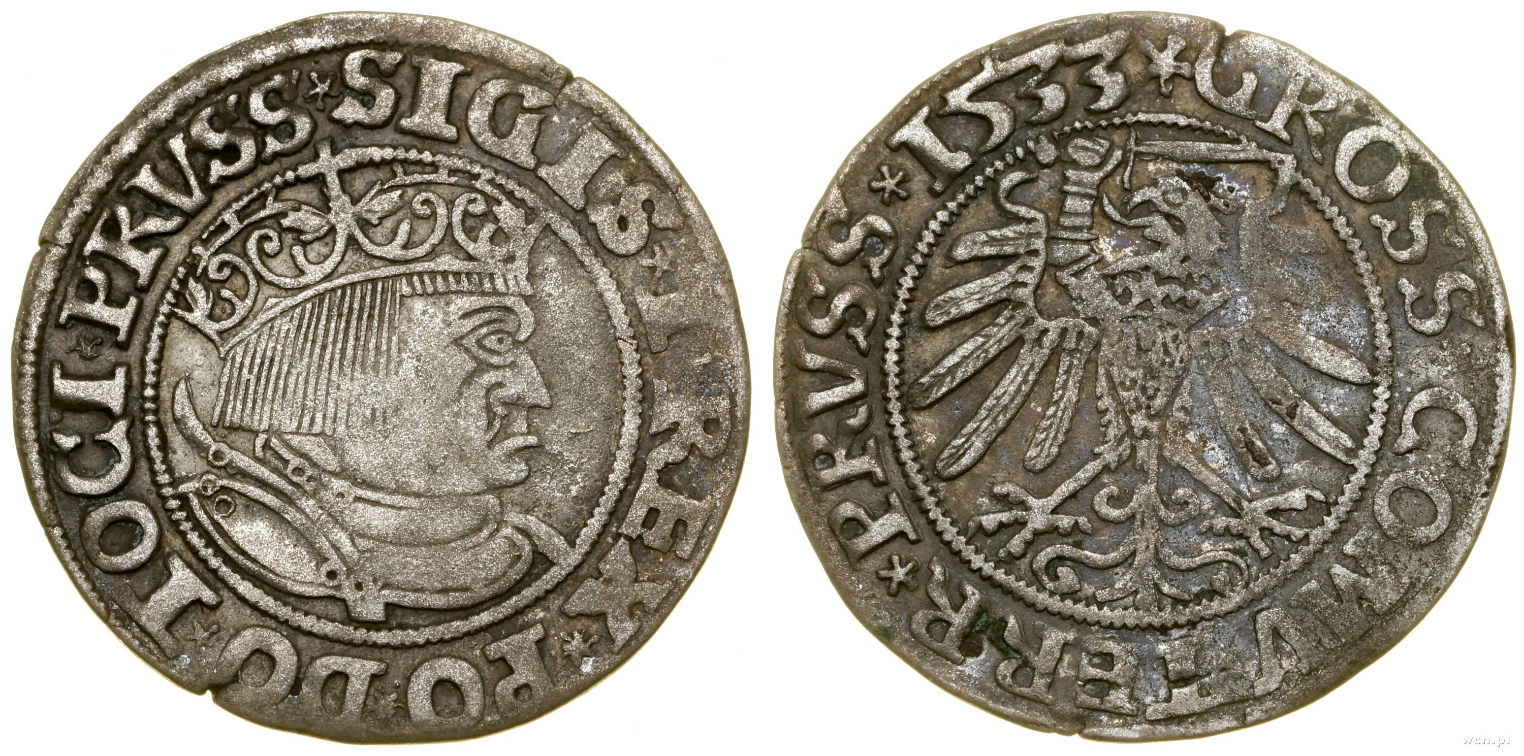 popiersie władcy w czepcu i koronie, końcówki legend PRVS... | III/III+ |