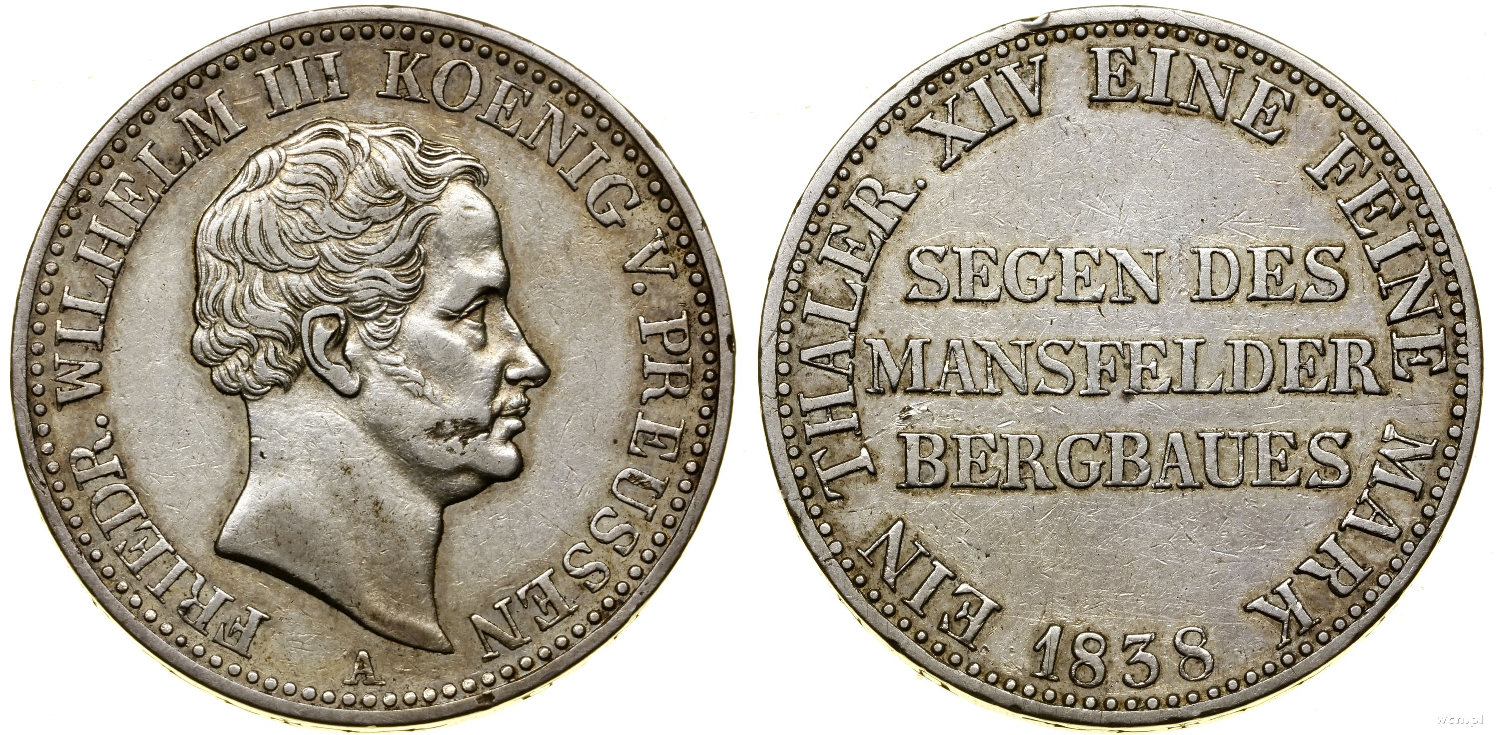 Niemcy, talar górniczy (Ausbeutetaler), 1838 A
