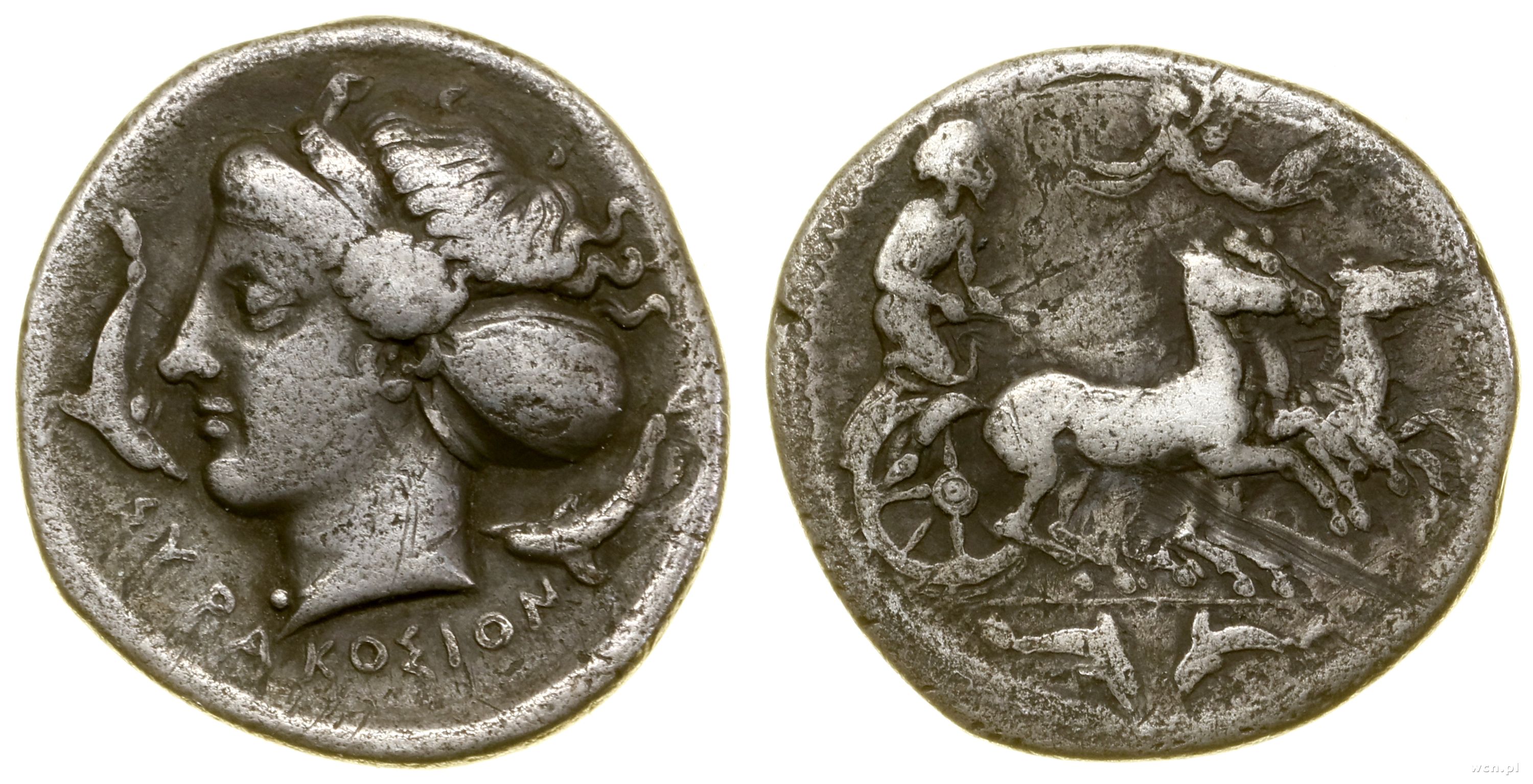 Aw: Głowa Aretuzy w lewo, po bokach delfiny, poniżej ΣYPA... | III- |