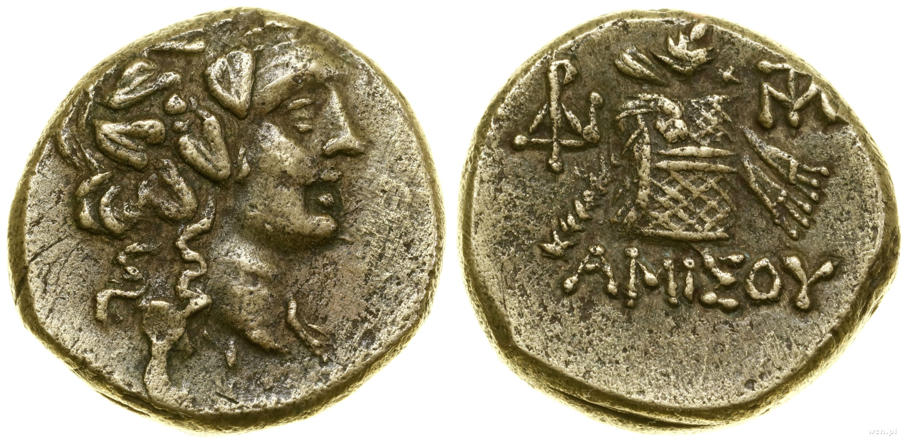 Aw: Głowa Dionizosa w wieńcu, w prawo, Rw: Cista mistica,... | III+ |
