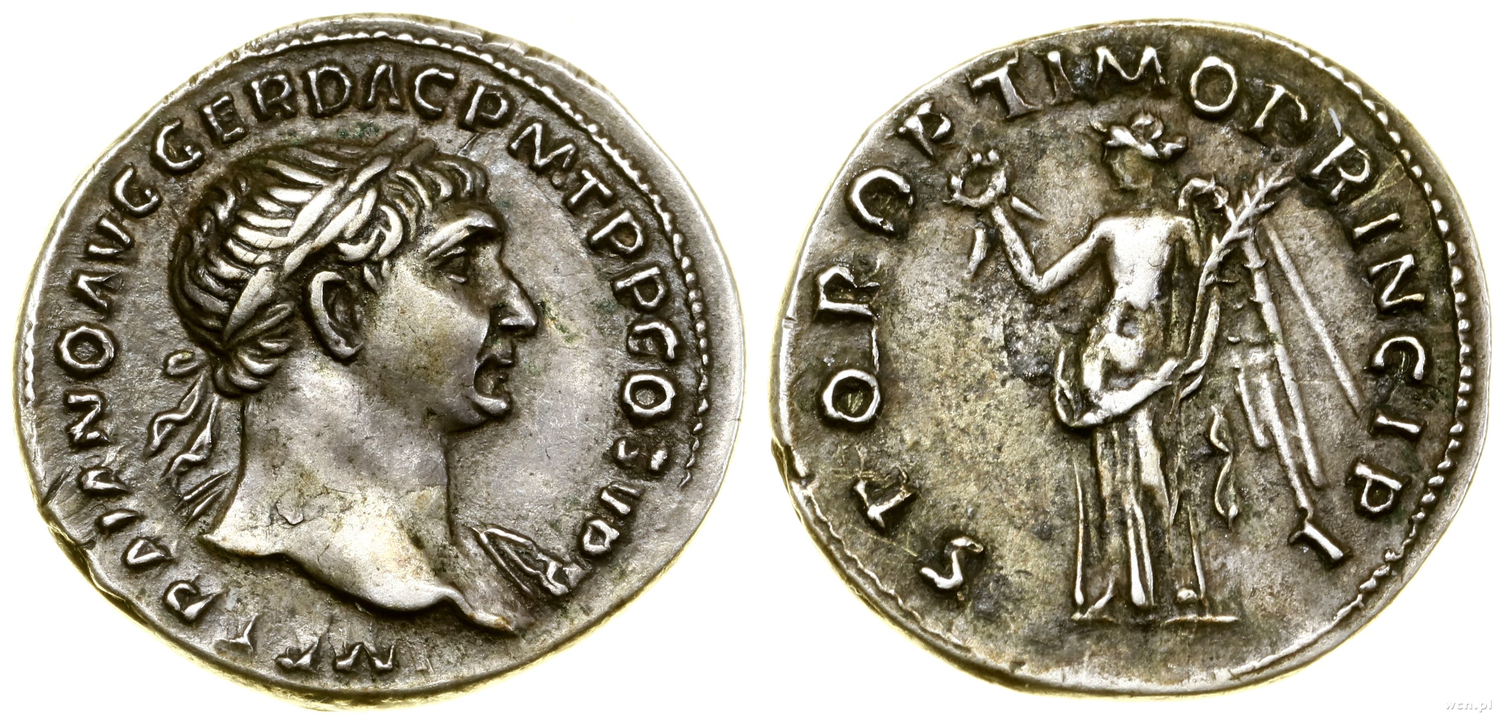 Aw: Popiersie władcy w prawo, IMP CAES NER TRAIAN OPTIM A... | III- |