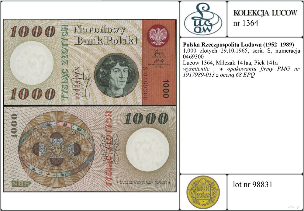 | Opis: | Polska - Polska Rzeczpospolita Ludowa (1952–1989), 1.000 złotych, 29.10.1965, seria S, numeracja 0469300 |