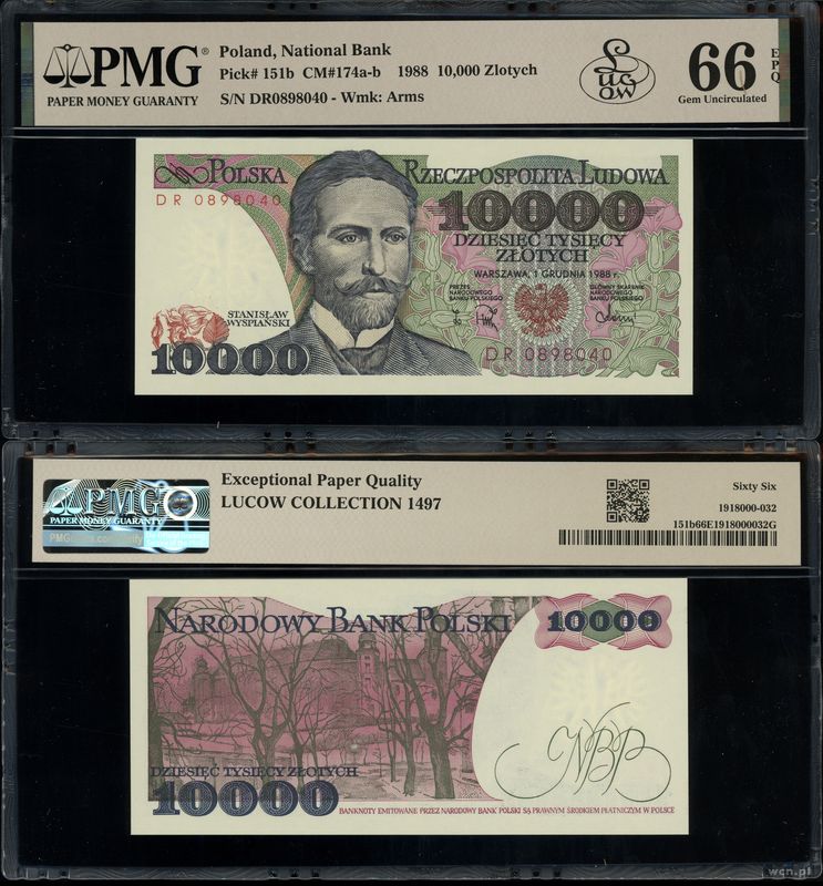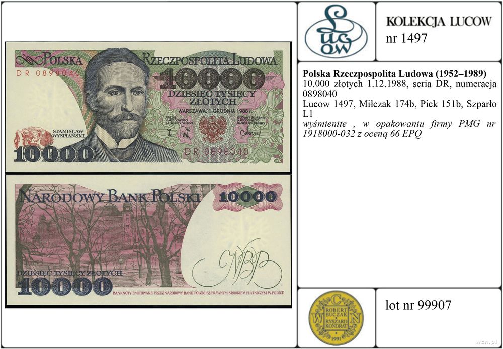 | Opis: | Polska - Polska Rzeczpospolita Ludowa (1952–1989), 10.000 złotych, 1.12.1988, seria DR, numeracja 0898040 |