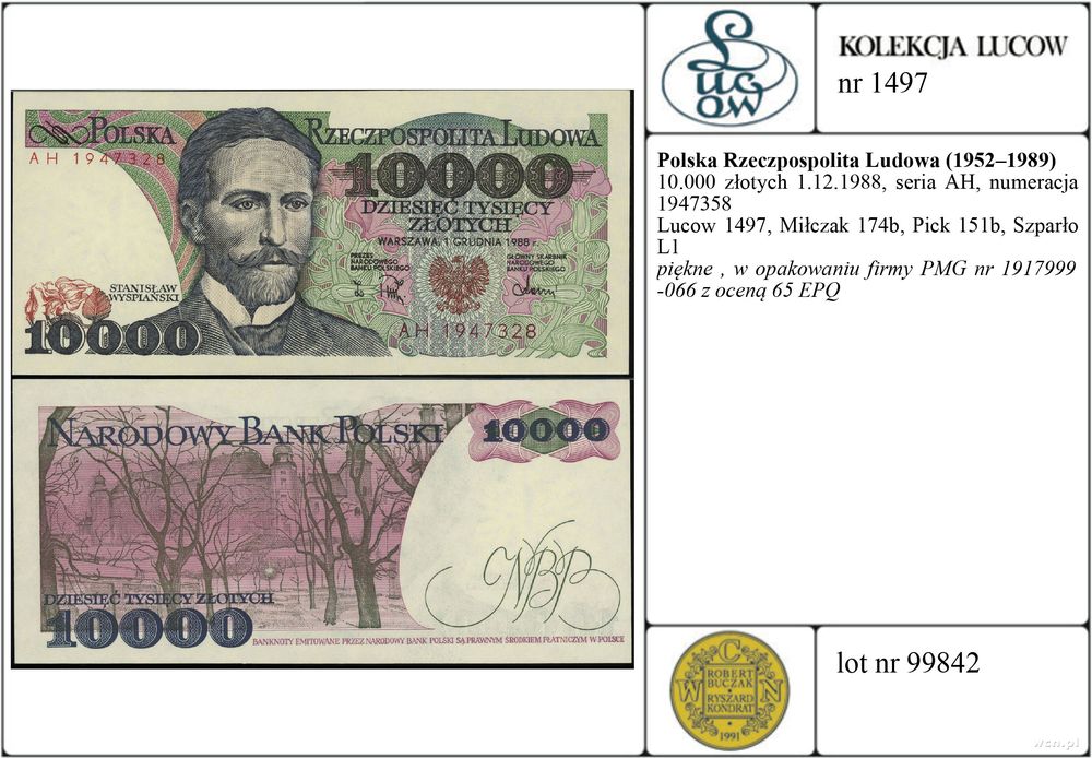 | Opis: | Polska - Polska Rzeczpospolita Ludowa (1952–1989), 10.000 złotych, 1.12.1988, seria AH, numeracja 1947358 |