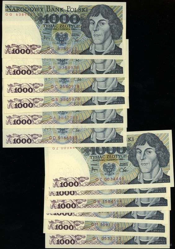 Polska, zestaw 12 banknotów o nominale 1.000 złotych, 1.06.1982