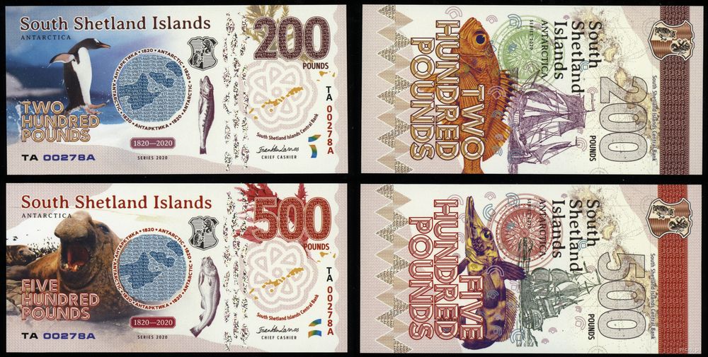 | Opis: | Antarktyda - Szetlandy Południowe, zestaw 6 banknotów, 2020, 5, 10, 50, 100, 200 i 500 dolarów, fauna arktyczna |