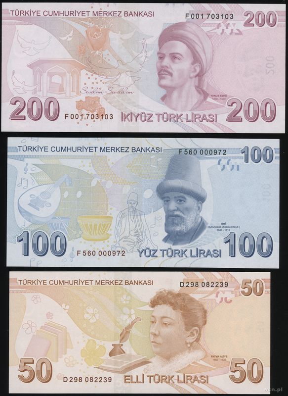 | Opis: | Turcja - Türkiye Cümhuriyet Merkez Bankasi, zestaw 5 banknotów, 2009, nominały: 10, 20, 50, 100 i 200 lirów |