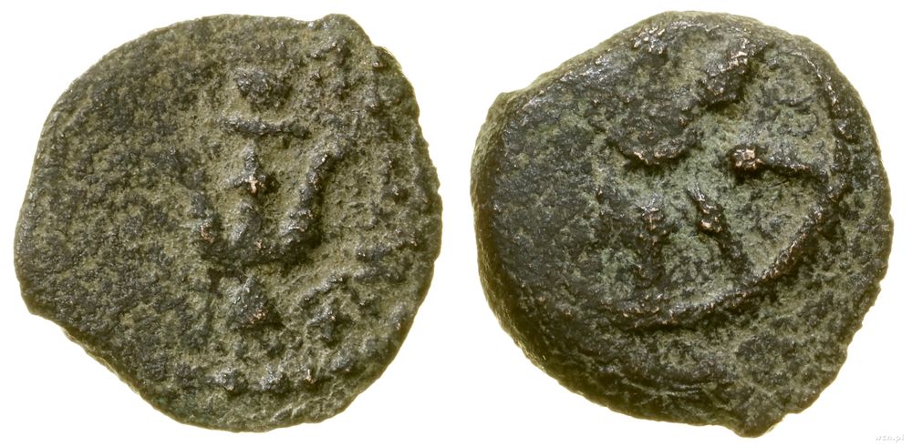 | Opis: | Rzym prowincjonalny - Judea - Dynastia Hasmonaean - Aleksander Jannaj (103–76 pne), prutah, Jerozolima, Aw: Kotwica, legenda, Rw: Ośmiopromienna gwiazda, legenda |