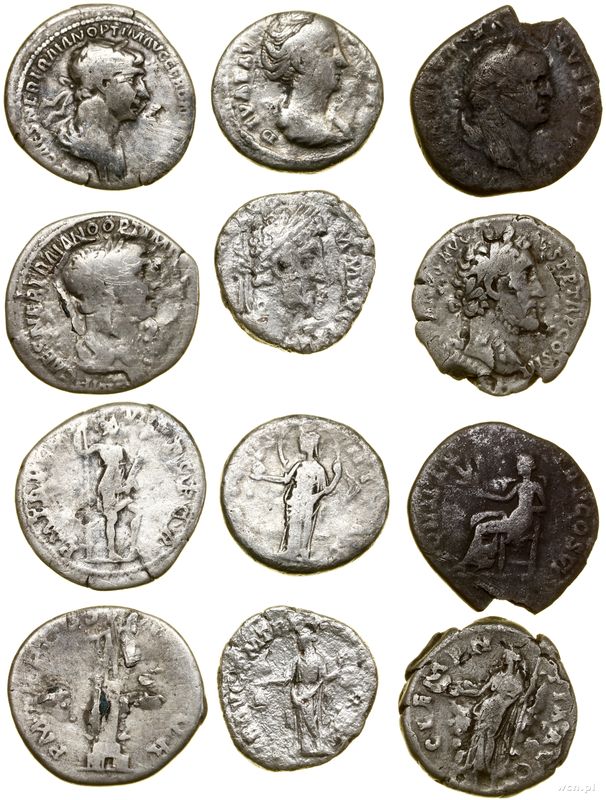 | Opis: | Cesarstwo Rzymskie - różni cesarze, zestaw 6 x denar, Rzym, 2 x Trajan / Wespazjan / Kommodus (?) / Hadrian / Faustyna Starsza |