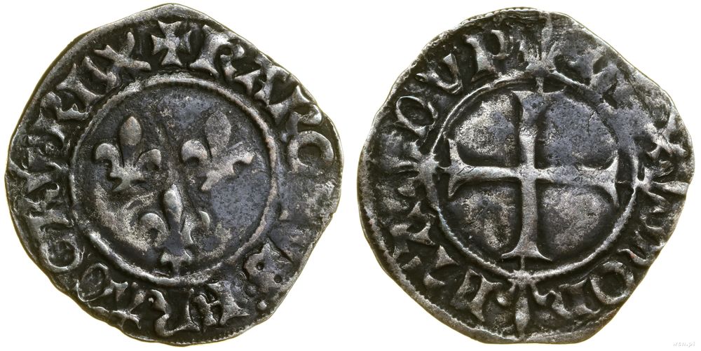| Opis: | Francja - Karol VI Szalony (1380–1422), double tournois (dwugrosz), (od 1385), Aw: Trzy lilie, + KΛROLVS ︙ FRΛNCORV ︙ REX, Rw: Krzyż z ramionami zwieńczonymi liliami, MON - ETΛ - DVP - LEX |