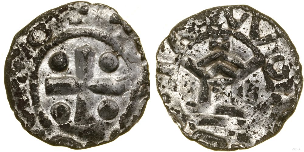 | Opis: | Niemcy - Frankonia - Wormacja – biskupstwo - Otto III (983–1002), denar, X–XI w., Aw: Krzyż, w każdym kącie kulka, + OTT…, Rw: Kapliczka z krzyżem wewnątrz, VVO…CIA |