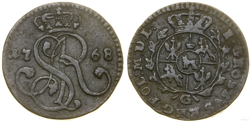 | Opis: | Polska - Stanisław August Poniatowski (1764–1795) - monety koronne, grosz, 1768 G, Kraków, korona z perełkami, wieniec bez jagódek |