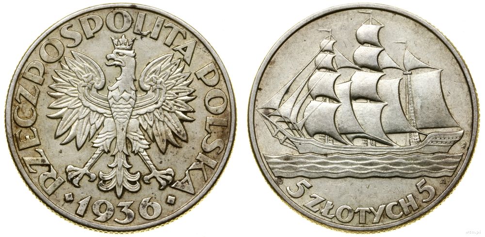 | Opis: | Polska - II Rzeczpospolita Polska (1918–1939) - monety obiegowe, 5 złotych, 1936, Warszawa, Żaglowiec |
