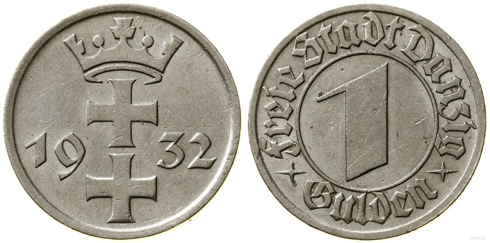 | Opis: | Polska - Wolne Miasto Gdańsk (1920–1939), 1 gulden, 1932, Berlin, herb Gdańska |