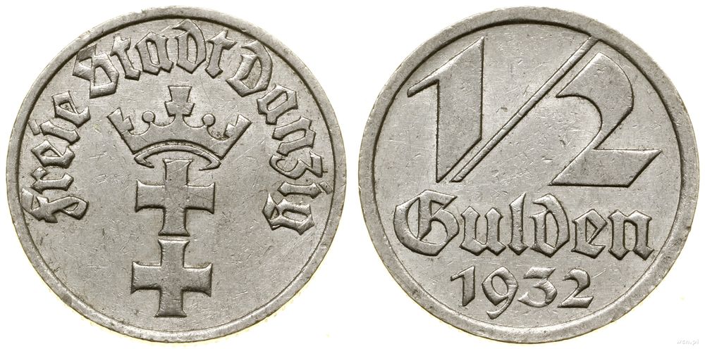 | Opis: | Polska - Wolne Miasto Gdańsk (1920–1939), 1/2 guldena, 1932, Berlin, herb Gdańska |
