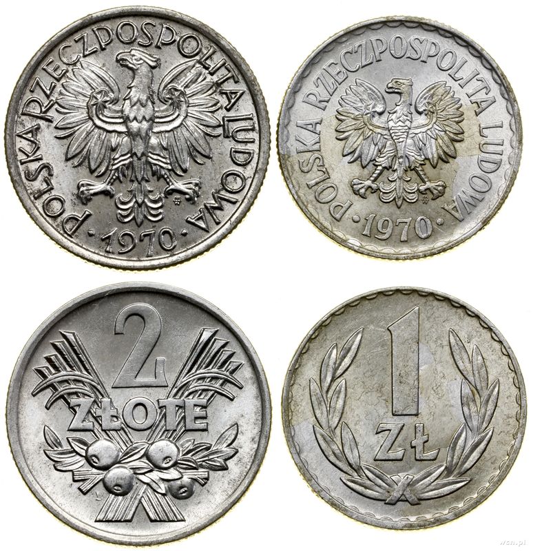 Polska, zestaw: 1 złoty oraz 2 złote, 1970