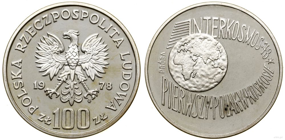 | Opis: | Polska - Polska Rzeczpospolita Ludowa (1952–1989) - monety próbne, 100 złotych, 1978, Warszawa, Interkosmos - wypukły napis PRÓBA |
