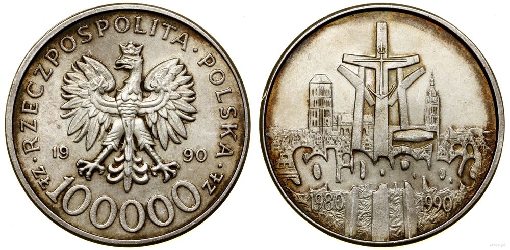 | Opis: | Polska - III Rzeczpospolita Polska (od 1989), 100.000 złotych, 1990, Warszawa, /typ C/, na awersie ZŁ blisko nominału, litera L na rewersie |