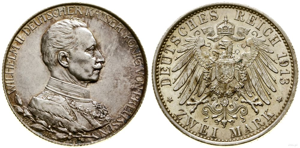 | Opis: | Niemcy - Prusy – królestwo (1701–1918) - Wilhelm II (1888–1918), 2 marki, 1913 A, Berlin, popiersie cesarza w mundurze |
