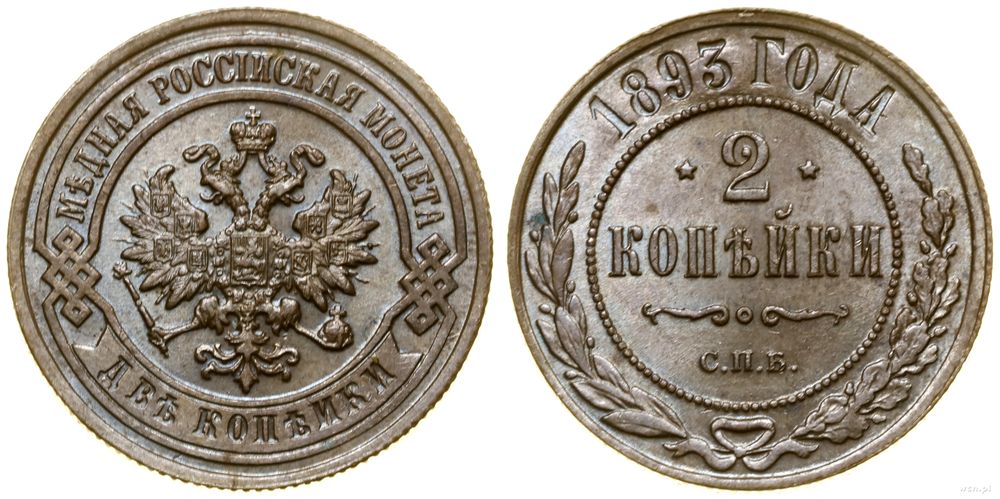 | Opis: | Rosja - Aleksander III (1881–1894), 2 kopiejki, 1893 СПБ, Petersburg |