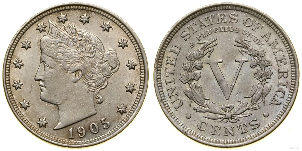 | Opis: | Stany Zjednoczone Ameryki (USA), 5 centów, 1905, Filadelfia, typ Liberty |