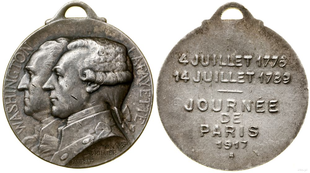 | Opis: | Francja - III Republika (1871–1940), George Washington & Lafayette - Dzień Paryża, 1917 A, Paryż, sygnowany: Gaston Lavrillier, PARIS-ART; Aw: Popiersia w lewo, WASHINGTON LAFAYETTE; Rw: Poziomo 4 JUILLET 1776 / 14 JUILLET 1789 / JOURNEE / DE / PARIS / 1917 / A |