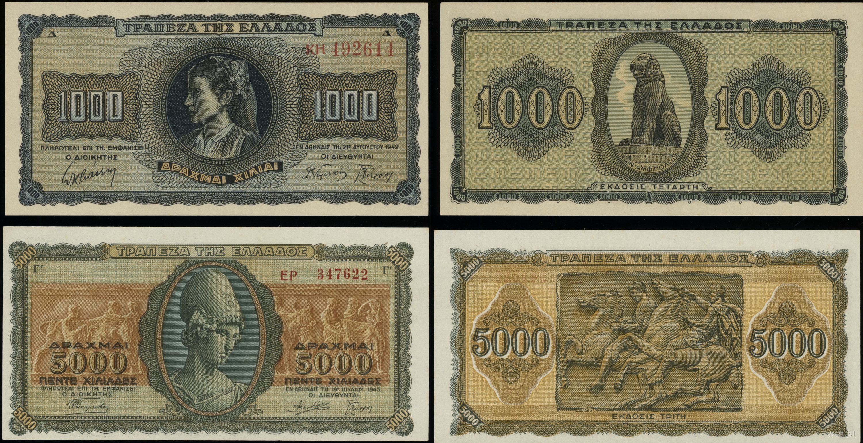 1) 1.000 drachm, 21.08.1942 2) 10.000 drachm, 29.12.1942 ... | I- |