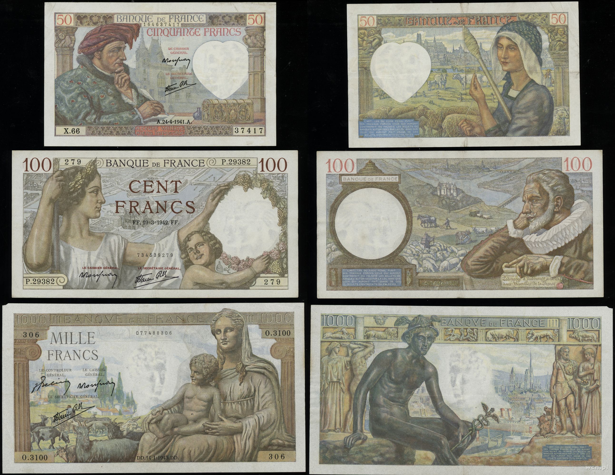 1) 50 franków 24.04.1941 seria X 66 2) 100 franków 19.03.... | III |