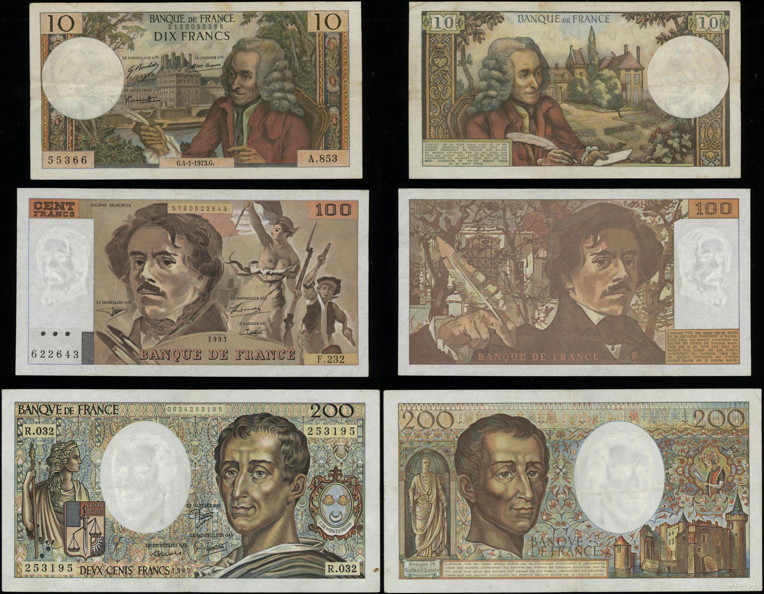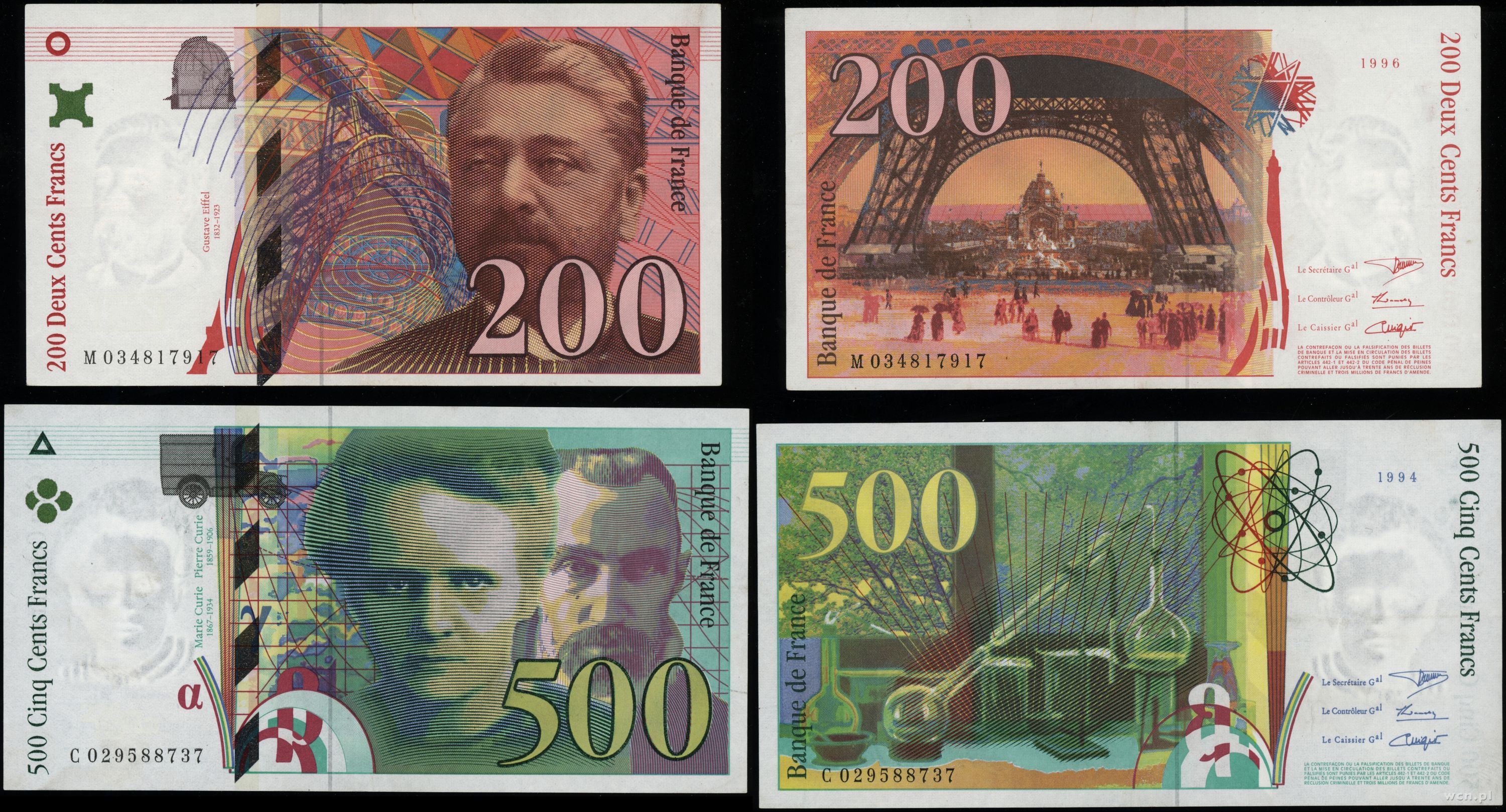 1) 200 franków 1996 seria M (III+) 2) 500 franków 1994 se... | II+/III+ |
