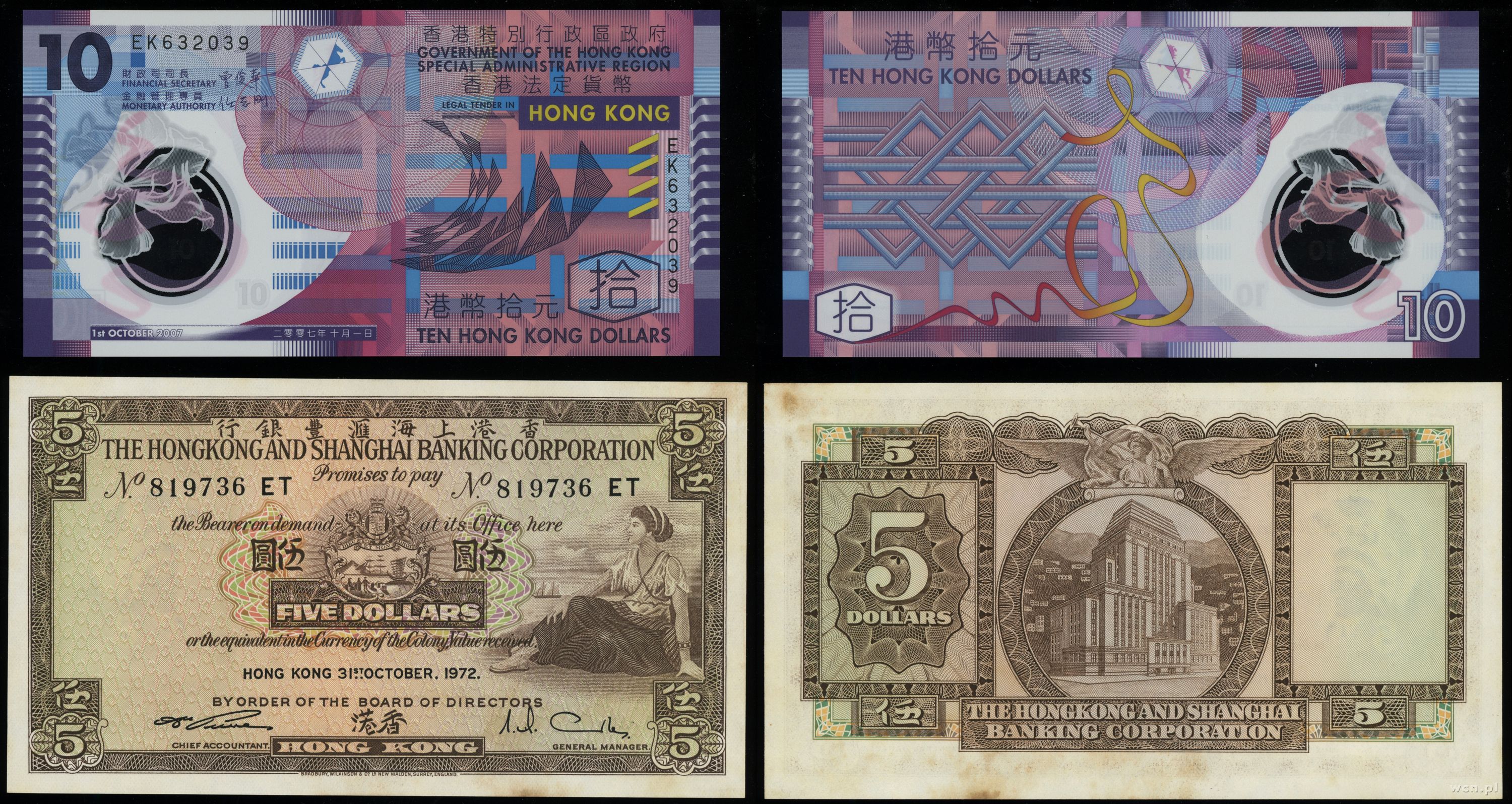 Hong Kong, zestaw: 5 i 10 dolarów, 1972 i 2007